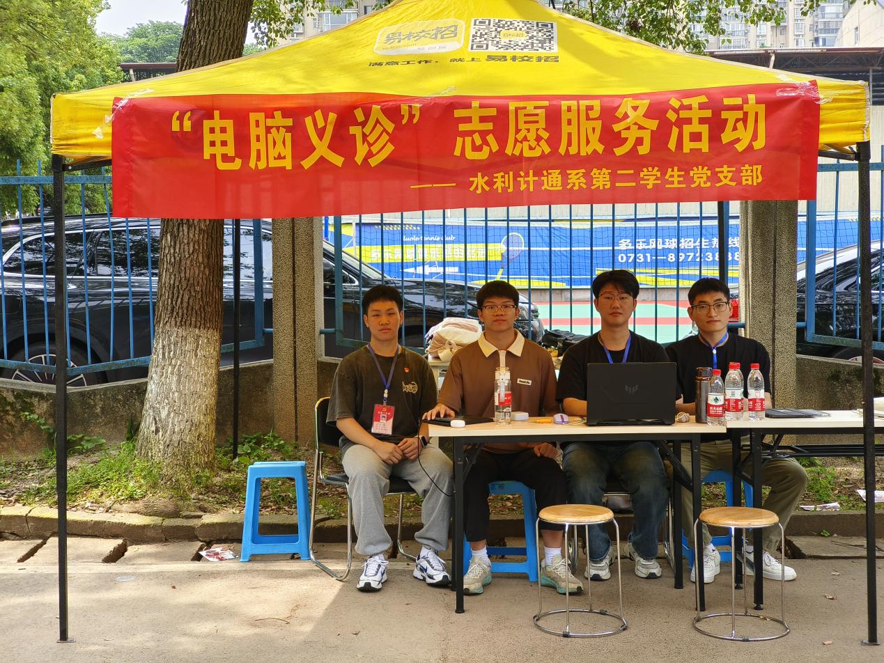 5月18日,城南学院水利计通系第二学生党支部党员在金盆岭校区进行"电脑义诊"的志愿活动。此次活动旨在运用党员专业所学,为全校师生提供电脑维修、网络安全等服务,以提升学生党员用专业办实事的能力。