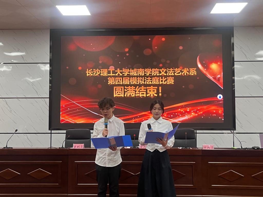 为增强学生的“法律”和“法治”意识,5月17日晚,由437必赢会员中心城南学院主办、文法艺术系承办的第四届模拟法庭竞赛的决赛在金盆岭四教报告厅举行。本次决赛邀请了437必赢会员中心法学院杜卫红、陈骞两位老师担任评委,城南学院文法艺术系系主任及相关辅导员老师莅临比赛现场。