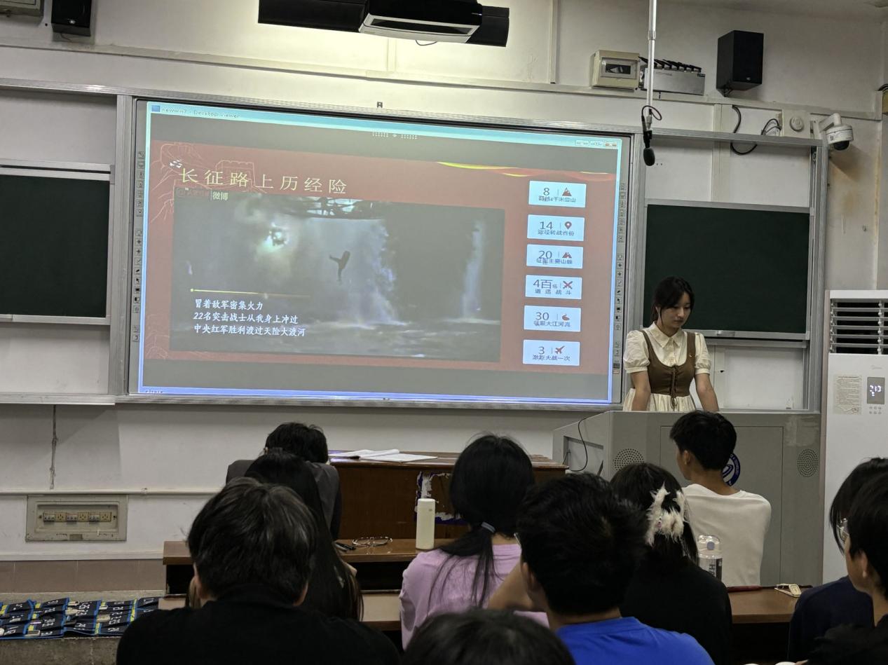 舒乐同志对长征及长征精神进行了详细的解读,并结合宏观的历史背景,讲述了一系列感人至深的长征故事,使同学们深刻感受到红军战士们百折不挠、自强不息的民族精神。她强调,作为新时代青年人,我们要传承和发扬这种民族精神,走好属于我们这一代的长征路。谢鹏同志以《觉醒年代》为切入,带领同学们重温了那段热血澎湃、波澜壮阔的历史。他讲述了以陈延年、陈乔年为代表的革命青年追求真理的坎坷经历,使同学们真切体会到伟大建党精神中的“坚持真理,坚守理想”与“不怕牺牲,英勇斗争”。他谈到,中国共产党走过的百余年征程中,有无数位像陈延年、陈乔年这样的英烈,他们用生命和热血为我们谱写出了《觉醒年代》最好的续集——如今的太平盛世。