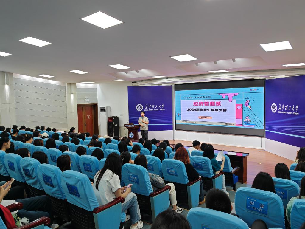 为确保2024届毕业生毕业季平稳度过,全面落实毕业生文明离校要求, 5月21日,经济管理系全体2024届毕业生在12教200召开年级大会,会议由毕业班辅导员王志鹏老师主持。
