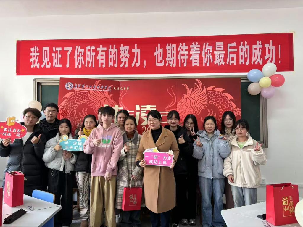 12月17日,文法艺术系在三教625温馨举办了“考研送温暖”活动,旨在为即将踏上研究生考试的同学们加油鼓劲,送上学院的关怀与祝福。学院党委书记施一满、院长李平及其他领导亲临现场,与同学们共同见证了这一暖心时刻。