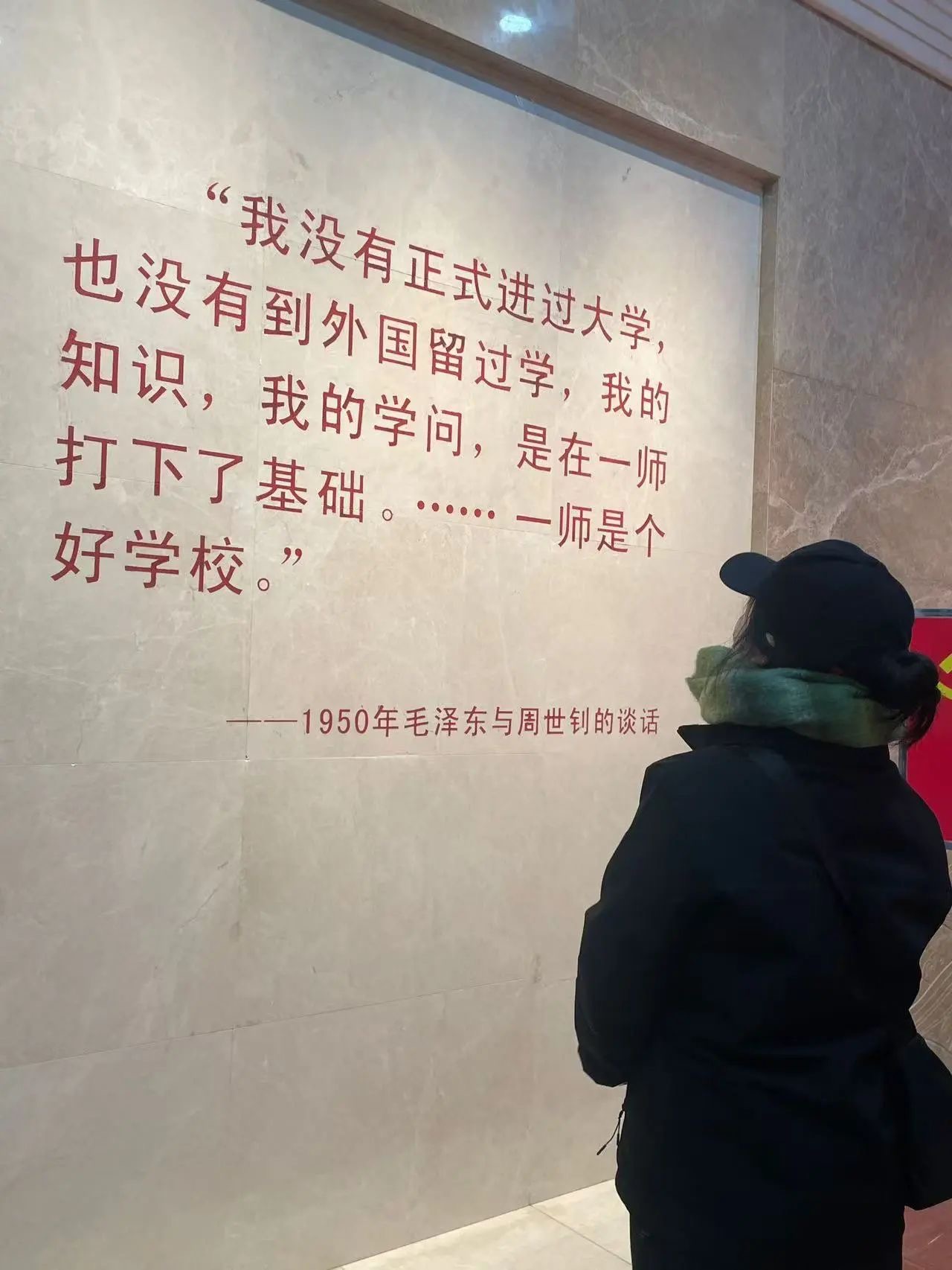 活动中,大家行走在湖南第一师范学院里,浓烈的红色气息扑面而来,在解说员的带领下,一同追忆毛泽东同志青年求学生活和革命故事,既追寻伟人足迹又感受时代变迁,感悟着一代伟人及革命前辈们探求人生真理、投身革命事业,为人民解放和国家富强不懈奋斗的崇高精神和家国情怀。