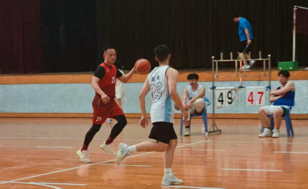 球赛现场激情洋溢,双方队员以球会友碰撞出精彩火花,三分远投、快攻上篮等高燃瞬间频发。经过激烈角逐,校友们以57:53的比分锁定胜局。