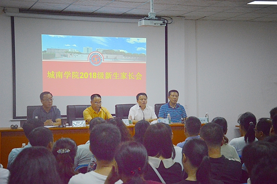 9月9日下午,城南学院在2教101召开了2018级新生家长会。院长赵华、党委副书记王明彦、副院长李晓铭以及300多名新生家长参加会议,会议由院党委书记黄自力主持。