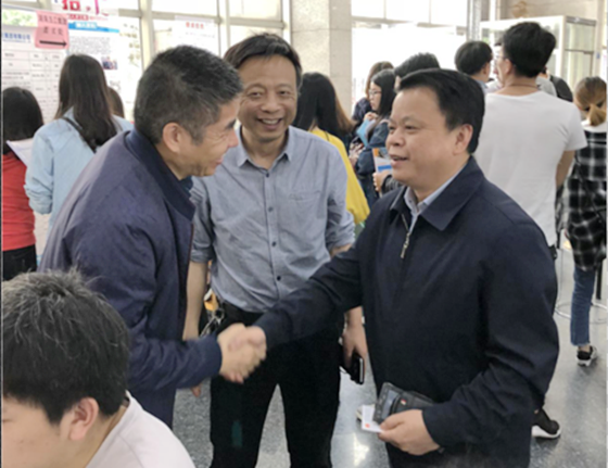 4月27日下午,城南学院2018年春季综合招聘会在金盆岭校区电苑楼举行。城南学院院长赵华,院党委书记袁剑波,学校招就处副处长贺良,城南学院党委副书记王明彦、副院长郝宁、李晓铭到场看望企业领导,并与求职学生进行交流,了解企业的招聘需求和毕业生的求职意愿,听取他们反馈的意见和建议,指导学生就业。