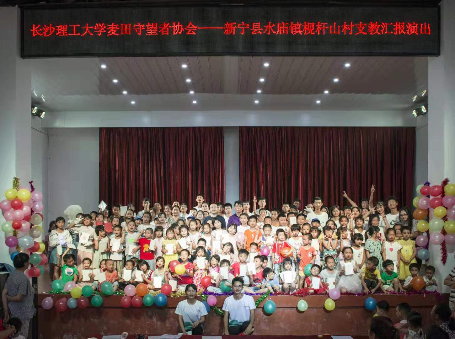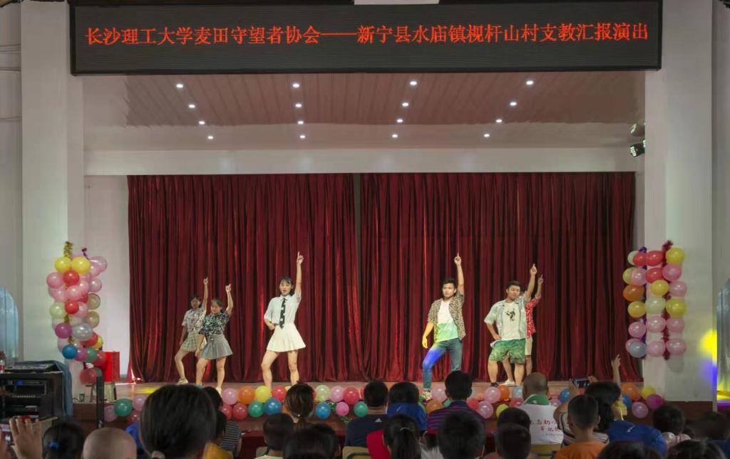 7月29日,437必赢会员中心城南学院麦田支教队为必赢官网扶贫点——新宁县水庙镇枧杆山村一百三十余名留守儿童举行“汇报演出”。437必赢会员中心驻村扶贫工作队队长、村第一书记宋刘斌,村支书杨忠祥,村主任龙艳洲,驻村扶贫工作队成员以及村两委干部等嘉宾受邀参加此次活动。