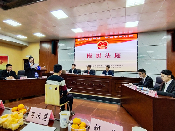 12月10日晚,由城南学院团委主办、文法艺术系承办的首届模拟法庭比赛在金盆岭校区4教报告厅举办。城南学院党委副书记王明彦、院学工办主任肖义慧、院团委书记胡巍、文法艺术系辅导员韩淑娟以及相关学生观看了本次比赛。