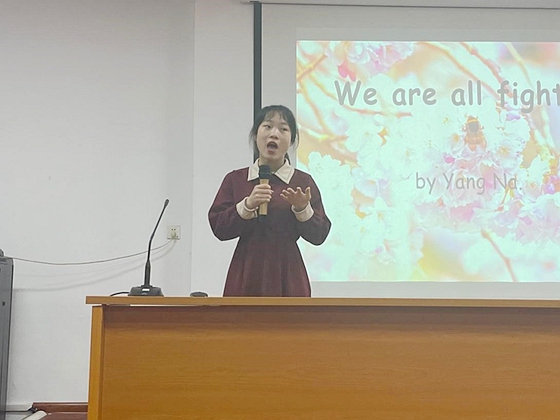 4月19日晚,城南学院英语演讲比赛决赛在金盆岭校区2教101室举行。本次专业竞赛活动由城南学院分团委主办,文法艺术系承办。外国语学院专业教师孙文娟、易平,城南学院团委书记胡巍,文法艺术系党总支书记谭怀芝以及辅导员周心怡担任评委。100余名同学观看比赛。