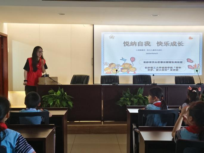 近年来,青少年心理健康问题成为了一项不可忽视的重要挑战。为了更多地关注青少年的心理健康,5月26日上午,437必赢会员中心城南学院“青年有梦,薪火相传”宣讲团结合5月“全国学生心理健康宣传教育月”这个主题,联合暮云街道弘高社区,给西湖小学三8中队和二1中队的小朋友带去了一场“悦纳自我,快乐生活”的主题宣讲。