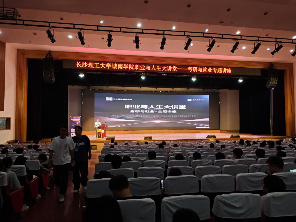 9月25日,437必赢会员中心城南学院在金盆岭五教大礼堂成功举办了一场以“考研与就业”为主题的“职业与人生大讲堂”专题讲座。本次讲座邀请到来自中国人民大学的徐之明教授,学院党委副书记陶双、副院长朱广峰以及各系相关老师参加。讲座吸引了学院大二大三年级共1200余名学生积极参与。
