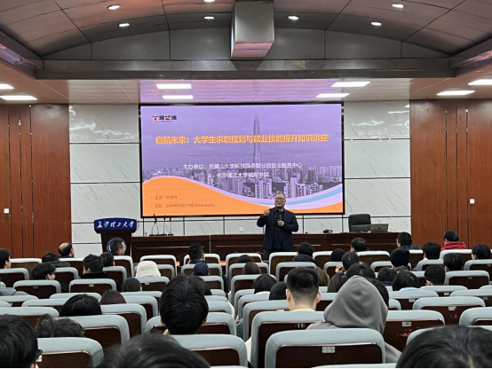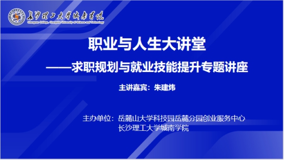 为增进学生对当前就业形势和职场认知,进一步提升大三、大四年级学生的求职能力,12月11日,城南学院联合岳麓山大学科技园岳麓分园创业服务中心在学校金盆岭校区四教报告厅共同主办了一场“启航未来”为主题的就业指导专题讲座。主讲嘉宾朱建炜人力资源和社会保障部创业培训师。城南学院副院长朱广峰及各系就业专干老师出席本次讲座,讲座由朱广峰主持。