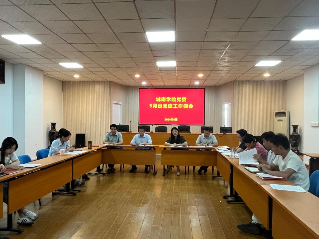 5月15日下午,城南学院党委在2教201召开5月份党建工作例会,学院党委书记施一满、副书记陶双、纪委书记朱广峰以及全体师生党支部书记参会。施一满主持会议。