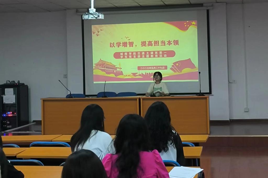 529日下午,交通土建系第一学生党支部在二教101召开“以学增智,提高担当本领”的主题教育活动,第一学生党支部书记武建伟带领支部全体党员参加。本次活动由李欣同志主持。