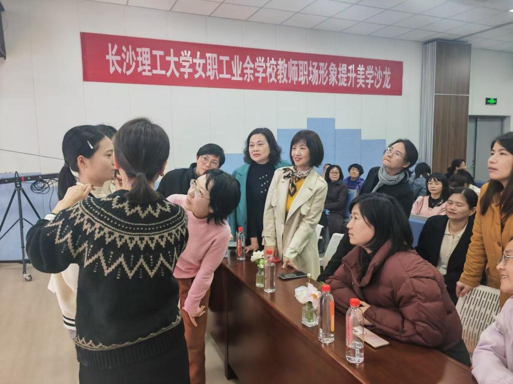 本次活动邀请到湖南师范大学武鹏博士担任主讲嘉宾,讲座围绕教师职业形象个人风格与服饰款型、色彩基础知识及服饰色彩搭配、适合教师的面妆造型技巧等方面进行了深入细致的讲解,并现场为老师们示范了日常职业妆容的化妆全程。通过专业的美学指导,帮助女职工了解职场着装风格、色彩搭配、化妆造型等相关知识,引导大家提升个人形象,彰显职业风采。