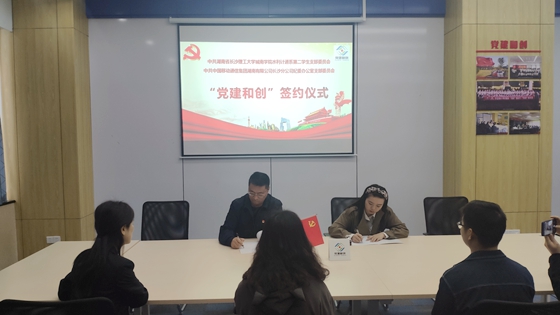 为进一步发挥党支部党建引领、共建互学、共同发展作用,形成“优势互补、合作共赢”的党建共建格局,3月31日,城南学院水利计通系第二学生党支部与中国移动通信集团湖南有限公司长沙分公司纪委办公室党支部举行“党建和创”签约仪式。中国移动通信集团湖南有限公司长沙分公司纪委党支部书记熊逆波、城南学院水利计通系党支部书记朱骞以及双方党员代表参加。