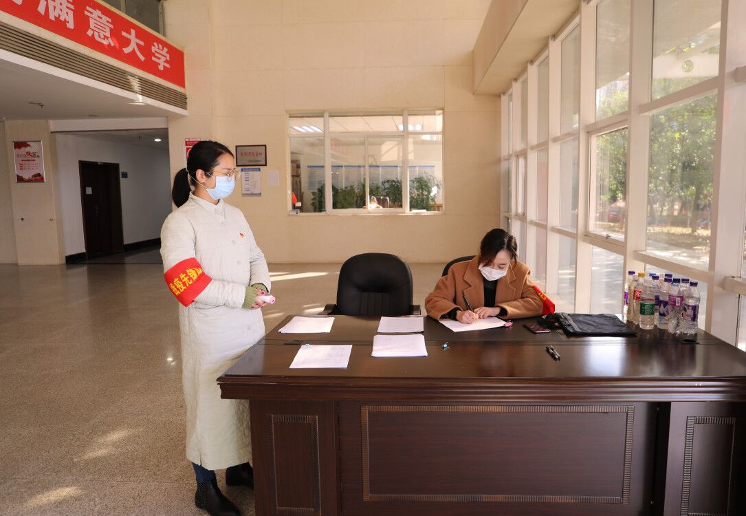 党员干部冲锋在前,实干担当,入党积极分子,民主党派和普通群众也主动请缨,要求加入抗“疫”先锋队。他们说:“学校太大,重点区域又多,我们也希望为抗‘疫’做点工作,共同构筑抗击疫情的防线。”
