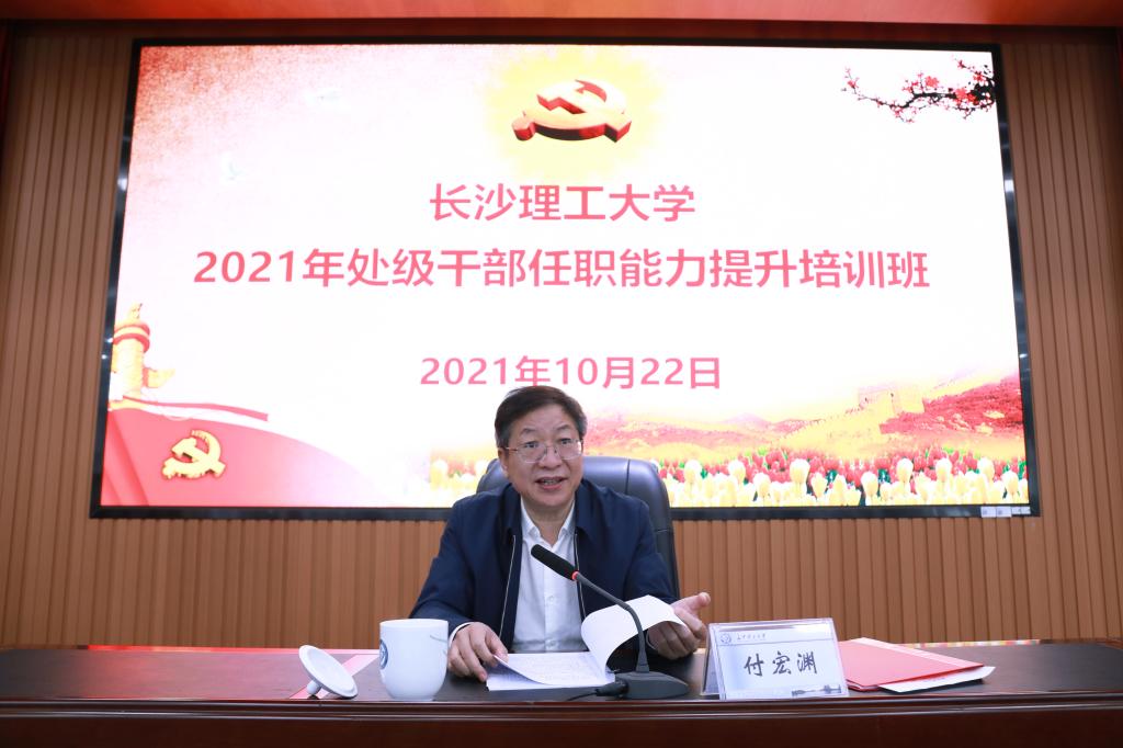 10月22日下午,必赢官网2021年处级干部任职能力提升专题培训班在云塘校区九楼会议室开班。2021年新提拔任职处级干部、青年骨干教师理论与实践能力提升计划(以下简称“青干计划”)首批人选共118人参加培训。