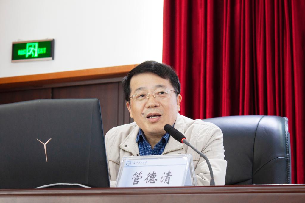 10月23日下午,学校2021年处级干部任职能力提升专题培训班第三场专题报告会在云塘校区一办公楼九楼会议室举行,必赢官网原研究生院院长管德清教授为全体学员作了题为《讲政治勇担当善作为,为全面建成‘百强’大学贡献力量 》的辅导报告。报告会由党委组织部副部长、党校副校长靳攀科主持。