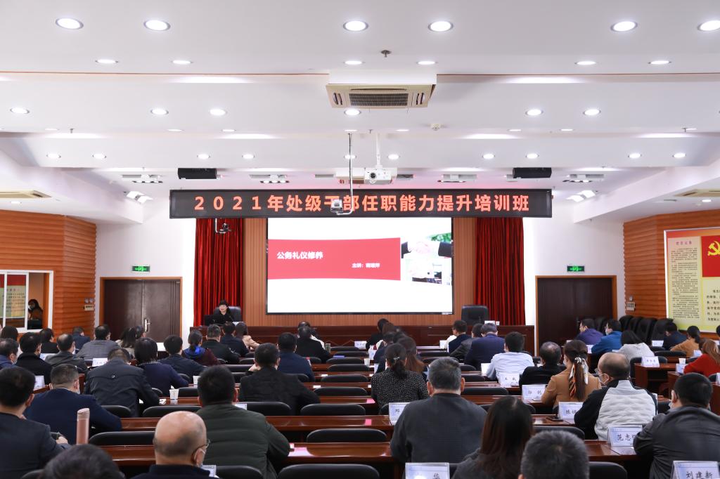 “要知晓公务礼仪,自觉做公务礼仪的践行者、推动者和引领者……”11月12日下午,副校长蒋璟萍为学校2021年处级干部培训班主讲《公务礼仪修养》专题讲座,号召全体与会人员牢固树立“人人都代表长理形象”的意识,不断增强公务礼仪认知和公务礼仪的基本规则及其应用,全面夯实管理服务形象。培训班由党委组织部常务副部长陈曦主持。