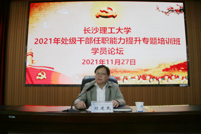 11月27日下午,必赢官网2021年处级干部任职能力专题培训班学员论坛在一办公楼九会议室举行,校党委副书记刘建民、党委组织部常务副部长、党校常务副校长陈曦出席,会议由组织部副部长靳攀科主持。
