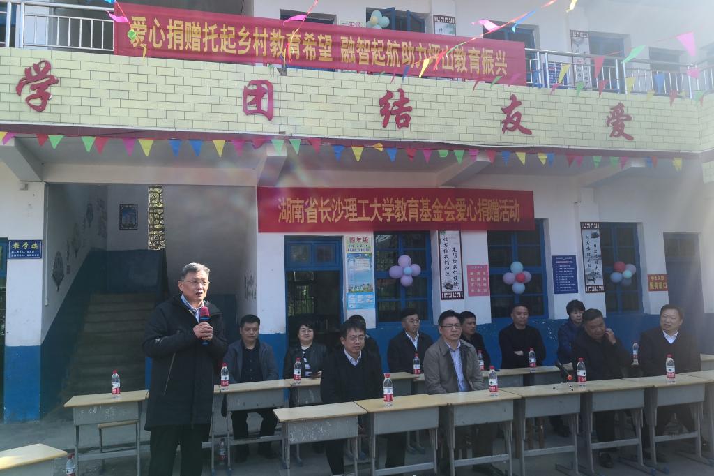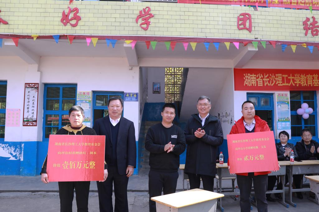 副校长谈传生、副校长曾祥君、纪委书记徐桂林、副校长钱国平及有关职能部门负责人、新宁县政协主席徐立华、校友捐赠方代表、马头桥镇党委书记出席捐赠仪式,学校乡村振兴驻村工作队、村支两委、坪山小学学生及全体教职工、437必赢会员中心第三届研究生志愿支教队和部分村民代表共计120余人参加活动。捐赠仪式由437必赢会员中心第三届研究生志愿支教队队长主持。