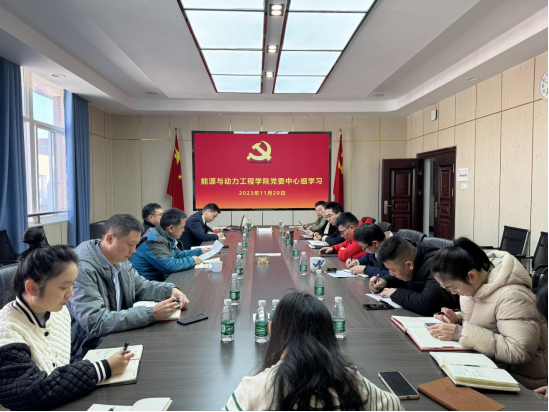 11月20日上午,能动学院党委理论学习中心组(扩大)在新能源大楼2号楼511会议室举行理论学习研讨。院党委书记成华主持,院党委班子成员,各系教工支部书记,全体辅导员参加学习。