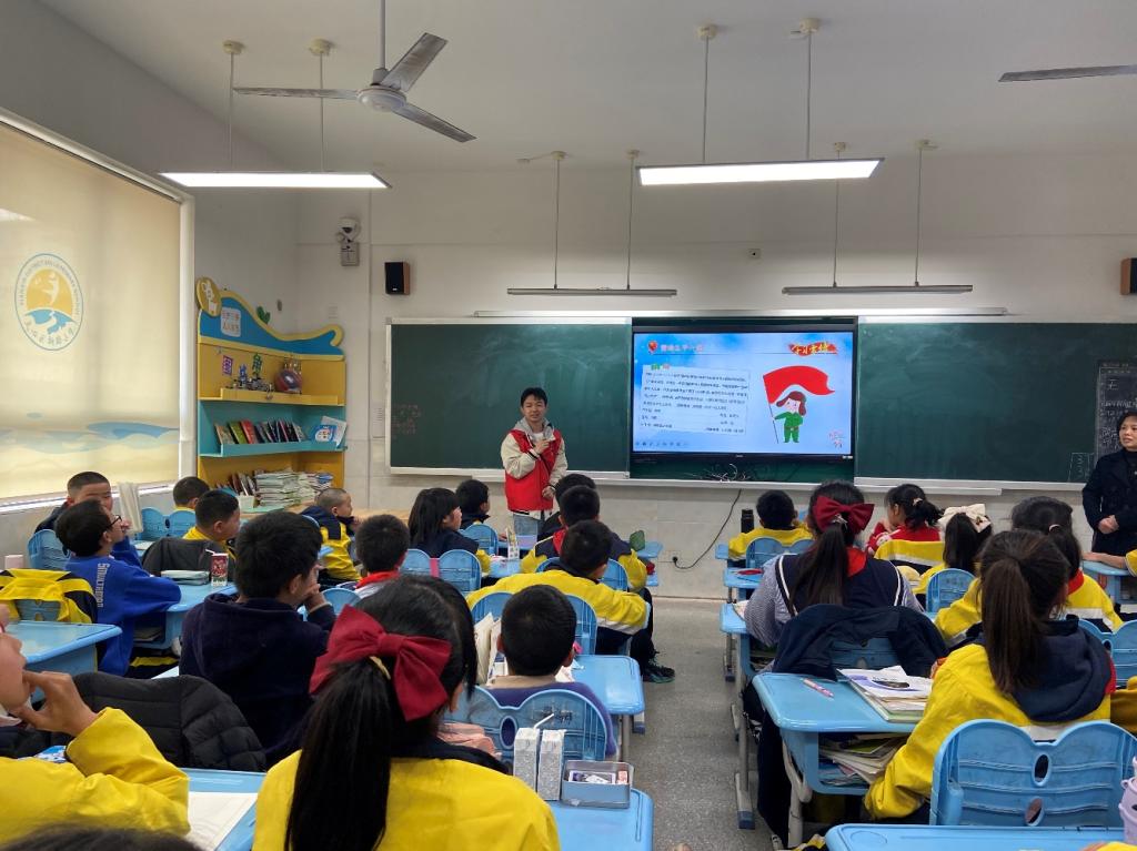 入党积极分子陈景龙向1班同学介绍了雷锋的生平、雷锋助人小故事、雷锋精神的内涵等,他结合丰富的音视频资料,让大家真正理解到了什么是雷锋精神,也明白了作为一名小学生,可以怎么去践行雷锋精神。