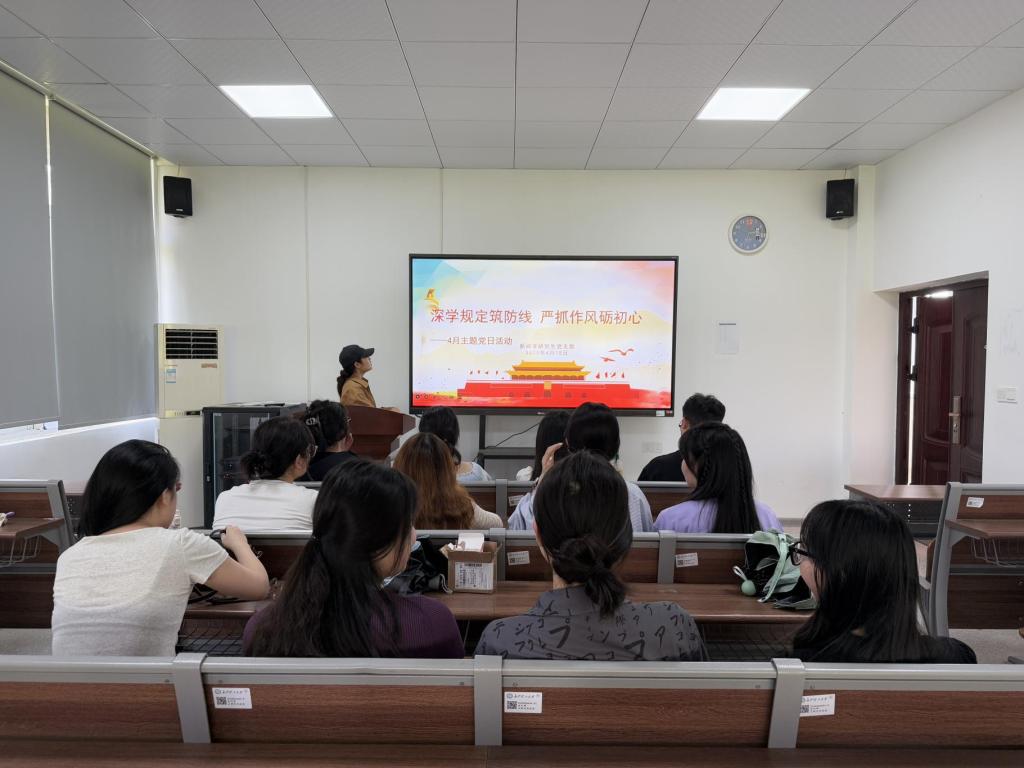 为深入推进主题教育,感悟思想伟力,严格落实“三会一课”,夯实支部“一月一课一片一实践”活动要求,2025年4月12-25日,文新学院各学生党支部开展以“深学规定筑防线、严抓作风砺初心”为主题的4月党日活动。