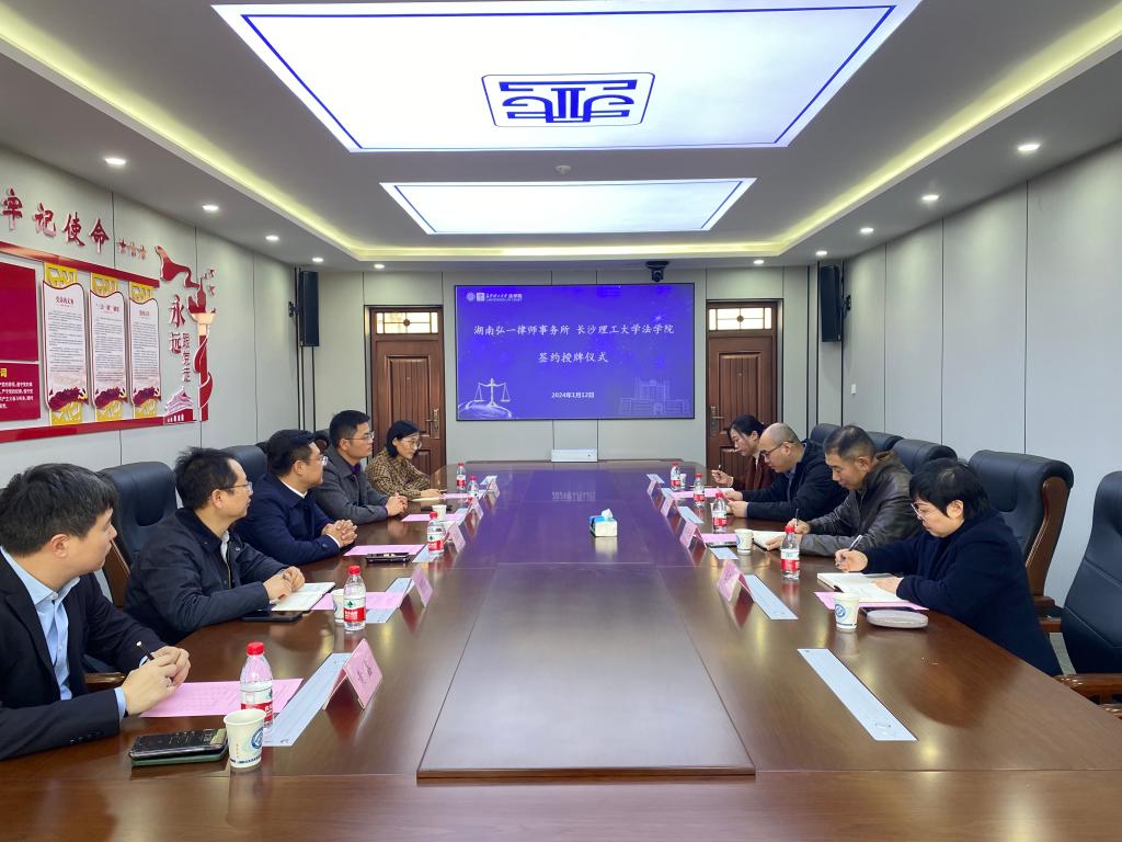 在签约环节,申纯副院长与周群翔主任分别代表双方在合作协议上签字,田兴洪书记代表法学院向湖南弘一律师事务所现场授牌,并举行授牌仪式。