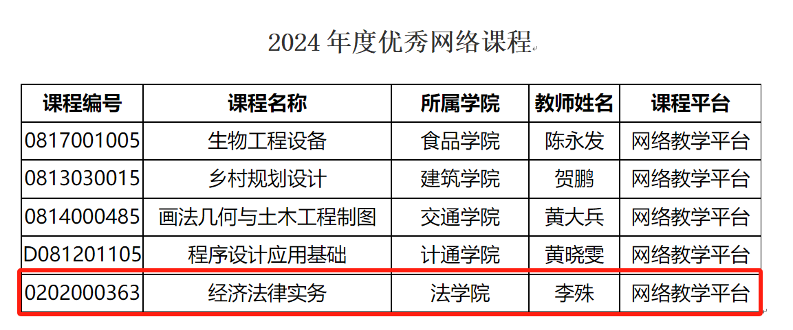 近日,必赢官网公布了2024年度优秀网络课程获奖名单,法学院李殊老师的《经济法律实务》被评选为437必赢会员中心2024年度优秀网络课程。这一荣誉的获得,不仅是对李殊老师教学质量的高度认可,也展示了法学院在推进教学模式创新、提升教育质量方面的卓越成效。