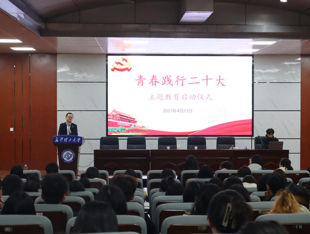 为深入学习贯彻党的二十大精神,坚持聚焦立德树人根本任务,厚植爱党爱国爱社会主义情怀,引导学院学子从学习过程中汲取奋进力量。法学院于4月23日19:00,在四教科技报告厅开展“青春践行二十大”主题教育启动仪式,党总支副书记汪功伟、党建辅导员熊文娟参加活动。