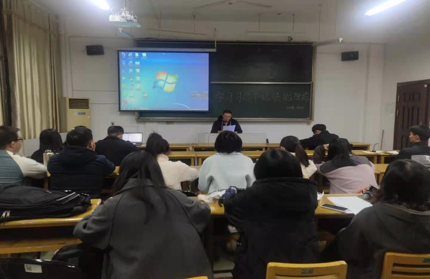 11月23日晚,法学系学生党支部组织全体研究生学生党员在金盆岭校区7教319教室,学习了学习习近平总书记法治理论和法治精神的会议,本次会议由黄颖同志主持,法学专业全体研究生党员参加会议。
