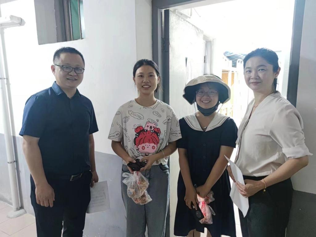 9月29日,中秋佳节,法学院党政领导班子、辅导员一同前往西苑三栋、五栋学生宿舍慰问新生,为每一位2023级新生送上祝福。