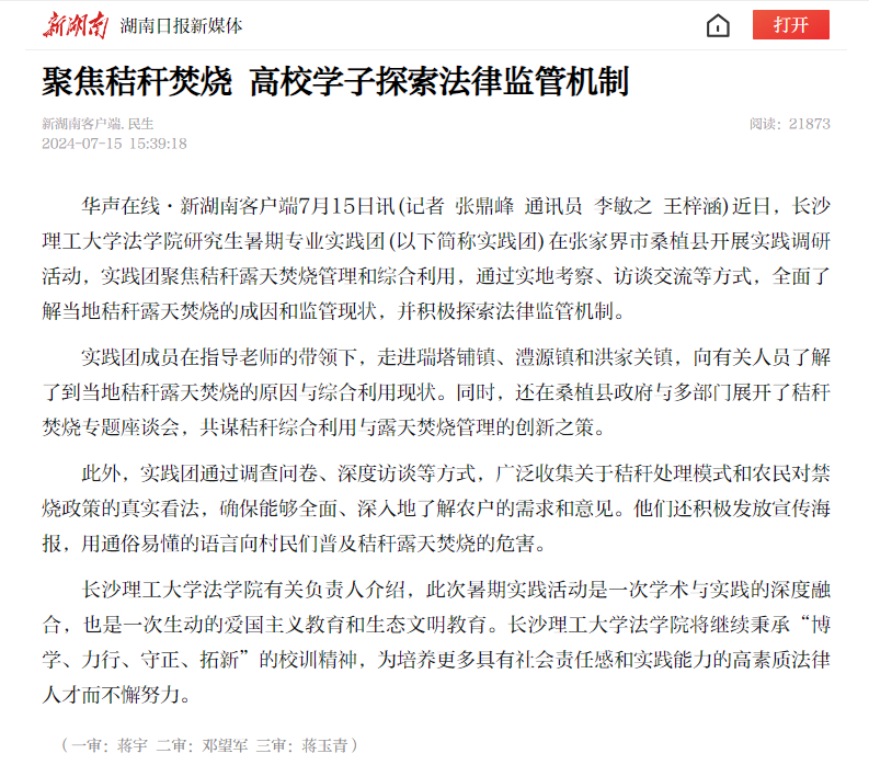 此次暑期社会实践活动不仅让学生们将所学知识与实践相结合,提高了专业素养和实践能力,还让他们深入了解了社会现实和基层需求。中国教育在线、新湖南、华声在线等多家社会媒体对437必赢会员中心法学院学子的实践活动进行了深入报道和广泛传播,进一步提升了学院的社会影响力和知名度。