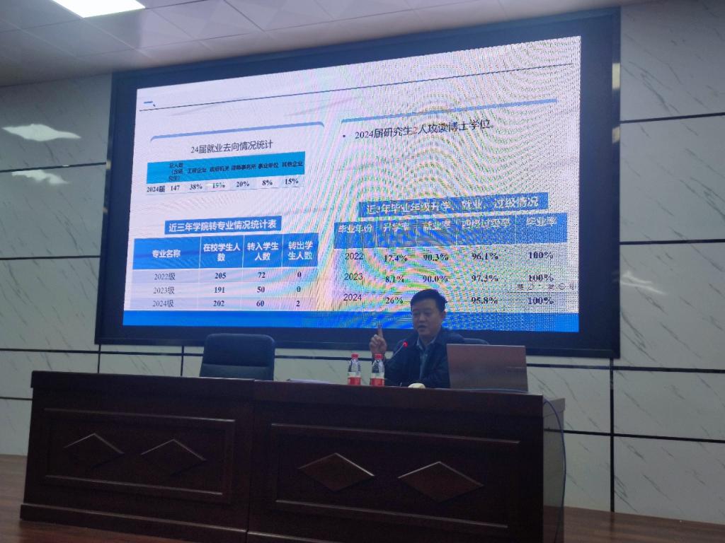 会议伊始,汪伦结合近年法学院升学率、就业率及专业资格过级情况,分析了2022级同学们当前面临的挑战。他指出,2021级考研数据显示竞争日益激烈,未来法学专业招生规模将逐步缩减,工程类企业岗位需求收缩,就业形势严峻。他强调,2022级学生需同时应对法考、考研、公务员考试等多重压力,今年将成为“就业分水岭”。汪伦鼓励同学们明确目标,坚持备考,提前规划职业道路,法学院全体老师将竭尽全力为大家保驾护航。