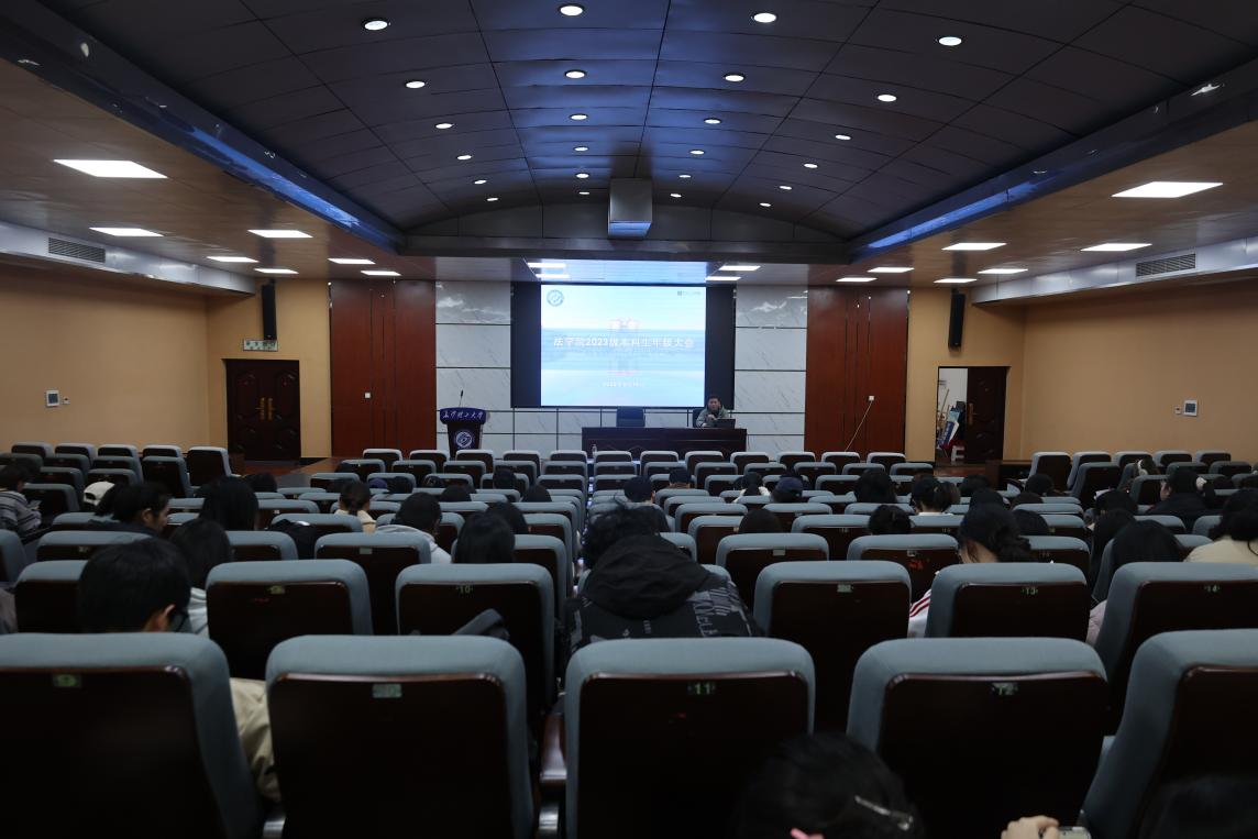 为进一步加强年级日常教育管理和学风建设工作,助力年级学生尽快适应新学期学习生活,树立学业目标,3月18日下午,学院在四教报告厅举行了2023级本科生年级大会。本次会议由年级辅导员兰贵辉主持,2023级全体学生参加。