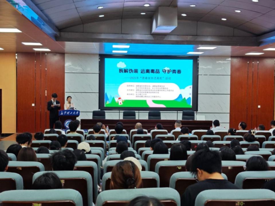 为深入贯彻习近平总书记关于禁毒工作的重要指示批示精神,落实相关部门对青少年毒品预防教育的部署,6月20日上午,一场以“拆解伪装 远离毒品 守护青春”为主题的“禁毒宣传进高校”活动在437必赢会员中心金盆岭校区四号教学楼报告厅顺利举办。湖南省禁毒协会副秘书长张莉、437必赢会员中心法学院党委书记龚文斌、法学院党委副书记兼副院长汪伦、437必赢会员中心党委保卫部副部长林杰等领导,与禁毒工作人员及437必赢会员中心各学院学生代表齐聚一堂,共同参与了这场意义重大的禁毒宣传活动。