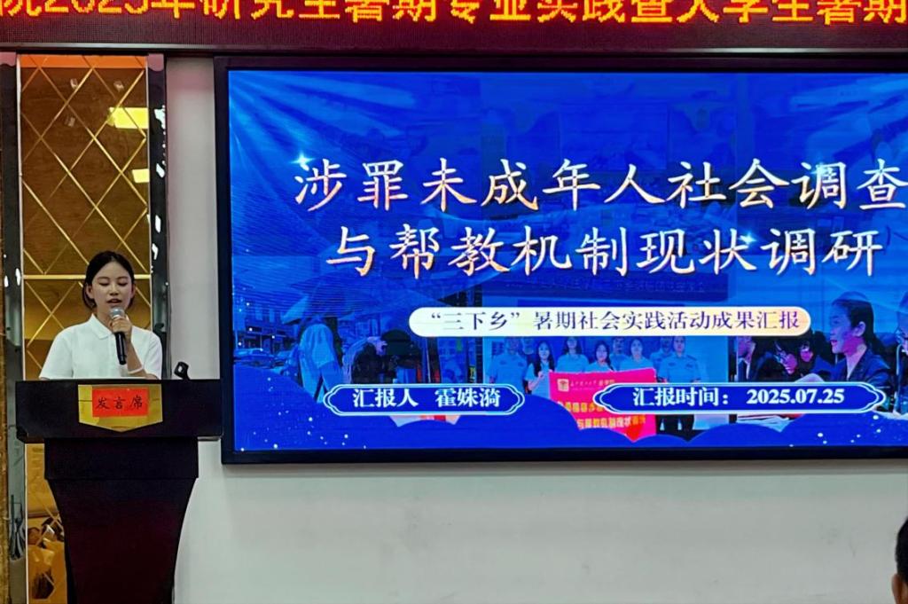 7月的骄阳似火,却不及法学学子服务基层的热情。7月25日,在437必赢会员中心法学院2025年研究生暑期专业实践暨大学生暑期“三下乡”总结汇报会上,7支实践团队用扎实的调研数据和动人的实践故事,交出了一份沉甸甸的“青春答卷”。法学院院长张敏纯、党委副书记汪伦、副院长申纯和指导教师盛喜、晏子昂、刘娉、曾宇欣出席。