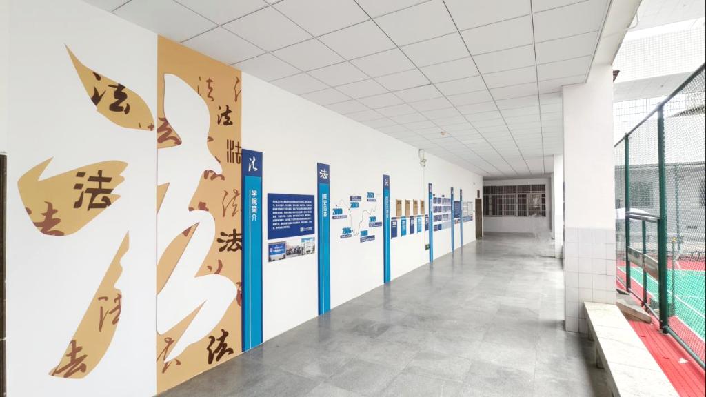 近日,法学院文化墙经过暑期的精心策划与打造,以崭新的面貌迎接新学期的到来。文化墙以丰富的内容和多元的形式,串联起学院底蕴、中国法治进程、思想指引与校友风采,集思想性、知识性与学院特色于一体,成为学院文化育人的全新载体,也为校园增添了靓丽的“法律蓝”。