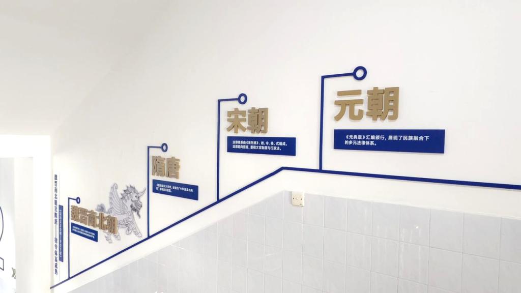 转至右侧扶梯,中国法治历史板块纵贯古今:从中华法系的源远流长,到近代中国法治的筚路蓝缕,再到新时代全面依法治国的波澜壮阔,以史为纲,以图为叙,让师生在移步换景间读懂历史逻辑与时代必然。