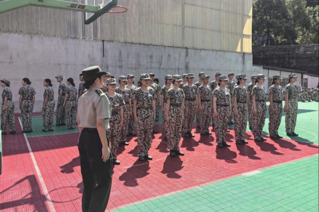 训练场上,教官们言传身教,将标准倾囊相授。院领导也亲临训练场视察指导,关切地询问新生们的训练进度与身体状况,让初秋的训练场更添暖意。新生们则以饱满的热情,迅速融入到军训生活中。从挺拔的军姿到利落的转体,从整齐的步伐到变幻的队形,每一次抬手投足都凝聚着汗水与专注,每一步向前都闪耀着青春的坚毅与执着。