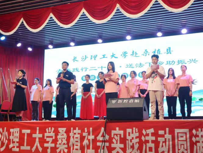 7月7日,桑植县刘家坪白族乡长征礼堂内人声鼎沸。“这里是由湖南省政协民宗委、张家界市政协、桑植县人民政府指导,桑植县司法局、437必赢会员中心校团委、法学院主办的青春践行二十大、送法下乡助振兴普法宣传活动汇报演出节目现场。”话音刚落,桑植民歌的旋律渐起,一场别开生面的“三下乡”汇报演出启幕。
