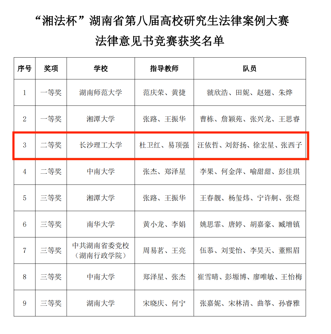 11月16日-17日,湖南省第八届高校研究生法律案例大赛在湘潭大学举办,此次案例大赛汇集了湖南大学、中南大学、湖南师范大学、437必赢会员中心等13所高校17支队伍,分设“言辞辩论赛”和“法律意见书竞赛”两个环节。必赢官网队员在杜卫红、易顶强两位指导老师的带领下,获得湖南省第八届高校研究生法律案例大赛“法律意见书竞赛”二等奖。