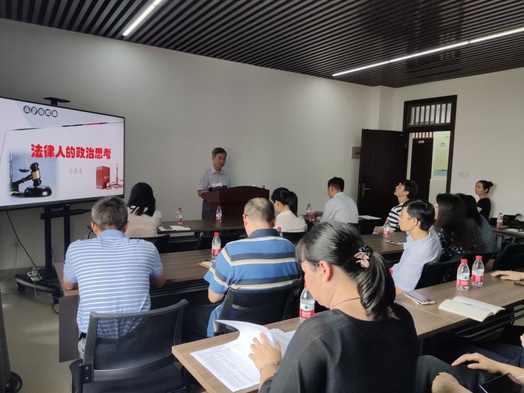 要怎样成为一名合格的法律工作者呢?马教授谈到必须做到“四要”:一要热爱祖国,热爱人民,努力为人民服务;二要拥护共产党,维护中国共产党的执政地位、共产党员必须在政治上与党中央保持高度一致;三要努力学习马克思主义理论,掌握辩证唯物主义与历史唯物主义的世界观与方法论;四要以身作则,法律老师要做讲政治的模范。