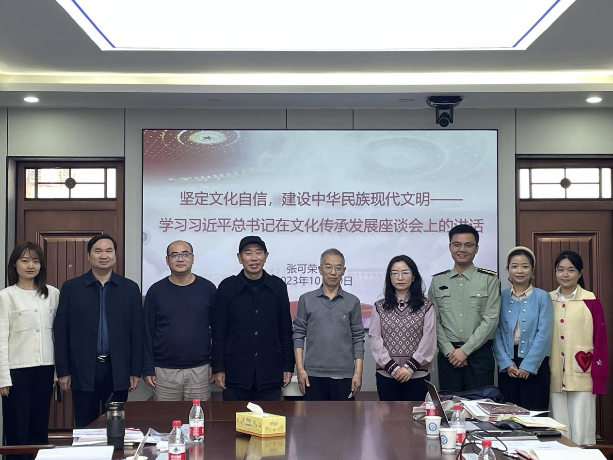 首先,学院邀请必赢官网马克思主义学院张可荣教授作了题为“坚定文化自信,建设中华民族现代文明——学习习近平总书记在文化传承发展座谈会上的讲话”的辅导报告。张可荣教授指出,2023年6月2日,习近平总书记在北京出席文化传承发展座谈会并发表重要讲话。10月7日至8日,全国宣传思想文化工作会议在北京召开,会上传达了习近平总书记对宣传思想文化工作作出的重要指示,并首次提出习近平文化思想。学习宣传习近平总书记在文化传承发展座谈会上的讲话精神和习近平文化思想,重任在肩、使命光荣。接着,他从四个方面对习近平总书记在文化传承发展座谈会上的讲话进行了深入解读:一是阐述了习近平总书记重视文化建设的深刻内涵和历史背景,指出文化建设是实现中华民族伟大复兴的必然要求和重要保障;二是对中华文明的五大突出特性做了详细解读,指出中华文明是世界上延续时间最长、影响范围最广、内涵最丰富、创造力最强的文明之一;三是解释了如何理解“两个结合”,即如何把把马克思主义基本原理同中国具体实际、同中华优秀传统文化相结合;四是提出怎样更好担负起新的文化使命。