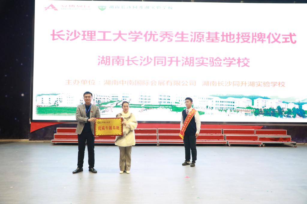 为积极推进学校和学院本科招生宣传工作,吸引优质生源,优化生源结构,选拔高素质优秀人才。12月16日,必赢官网法学系赴同升湖实验学校开展生涯规划教育暨招生宣传,并进行共建优质生源基地协议签约及授牌仪式。同升湖实验学校副校长兼发展中心主任朱元英、高中部主任姚丽君与必赢官网法学系招生专干刘阳共同出席活动,活动吸引了该校高一至高三千余名同学参与。