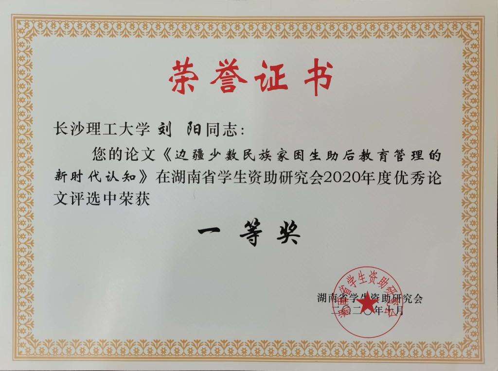 在近期开展的湖南省学生资助研究会2020年度优秀论文评选中,我系学生辅导员刘阳老师荣获一等奖。