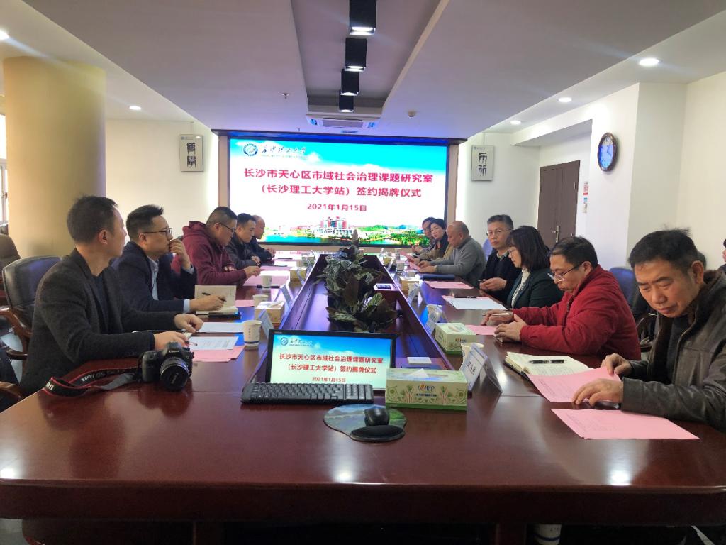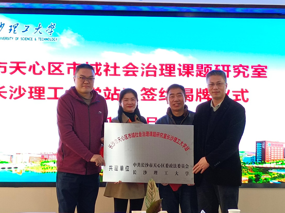 1月15日,“长沙市天心区市域社会治理课题研究室(437必赢会员中心站)”签约揭牌仪式在必赢官网举行。湖南省天心区政法委副书记陈国其,副校长蒋昌波出席,党政办主任周艳红主持仪式。