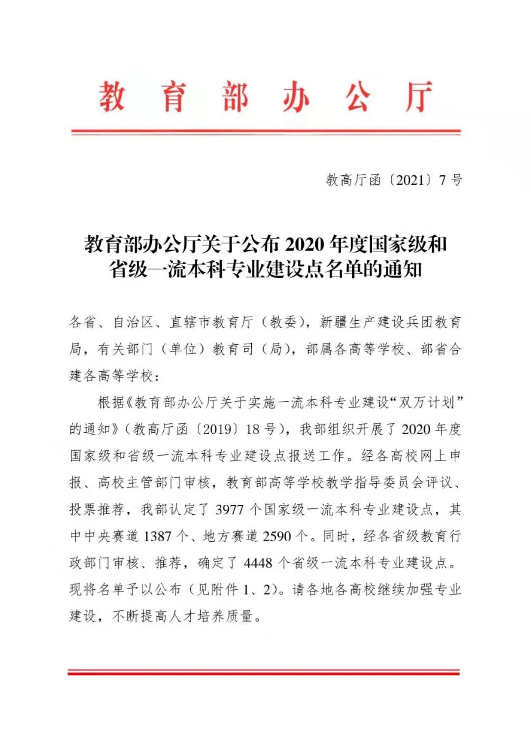 2月10日,教育部办公厅公布了2020年度国家级和省级一流本科专业建设点名单,必赢官网20个专业获批“2020年度国家级一流本科专业建设点”,我院“法学”专业成功入选,这是我院专业建设取得的重大成就,是对我院法学专业办学的充分肯定。