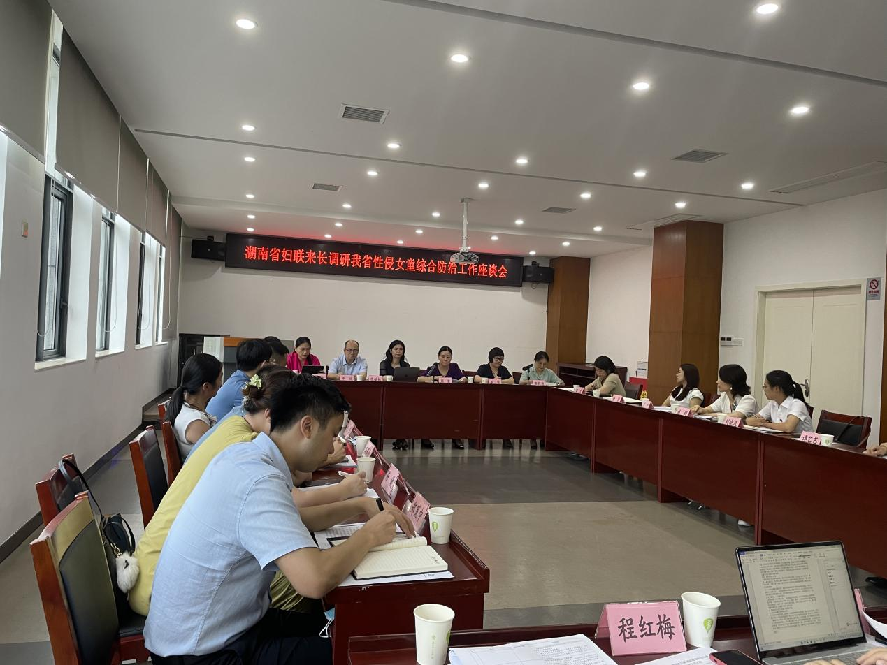 6月30日下午,法学院院长张敏纯、副院长申纯随省妇联调研组来长就湖南省性侵女童综合防治工作开展调研座谈,省妇联副主席提名人选周荣、省妇联权益部部长罗琼、省妇联权益部副部长舒蓉月、长沙市妇联副主席石莉波及长沙市女童保护各相关部门代表、社会群体代表参加。